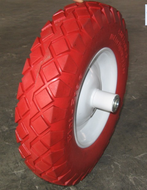 Nuesotras ruedas para carretillas emplean un cubo de rueda de hierro y el color puede ser personalizado. Rodamientos son empleados, los cuales vienen en tres diámetros: 16mm, 19mm y 20mm. El centro de la rueda puede ser diseñado con tapa para asegurar la protección de los tornillos de fijación de los ejes. Los neumáticos son fabricados de PU, para una prevención eficaz de vibraciones. La rueda para carretillas es aplicable en una variedad de herramientas de furgonetas, cochecillos, carritos para jardín, ademas de las.